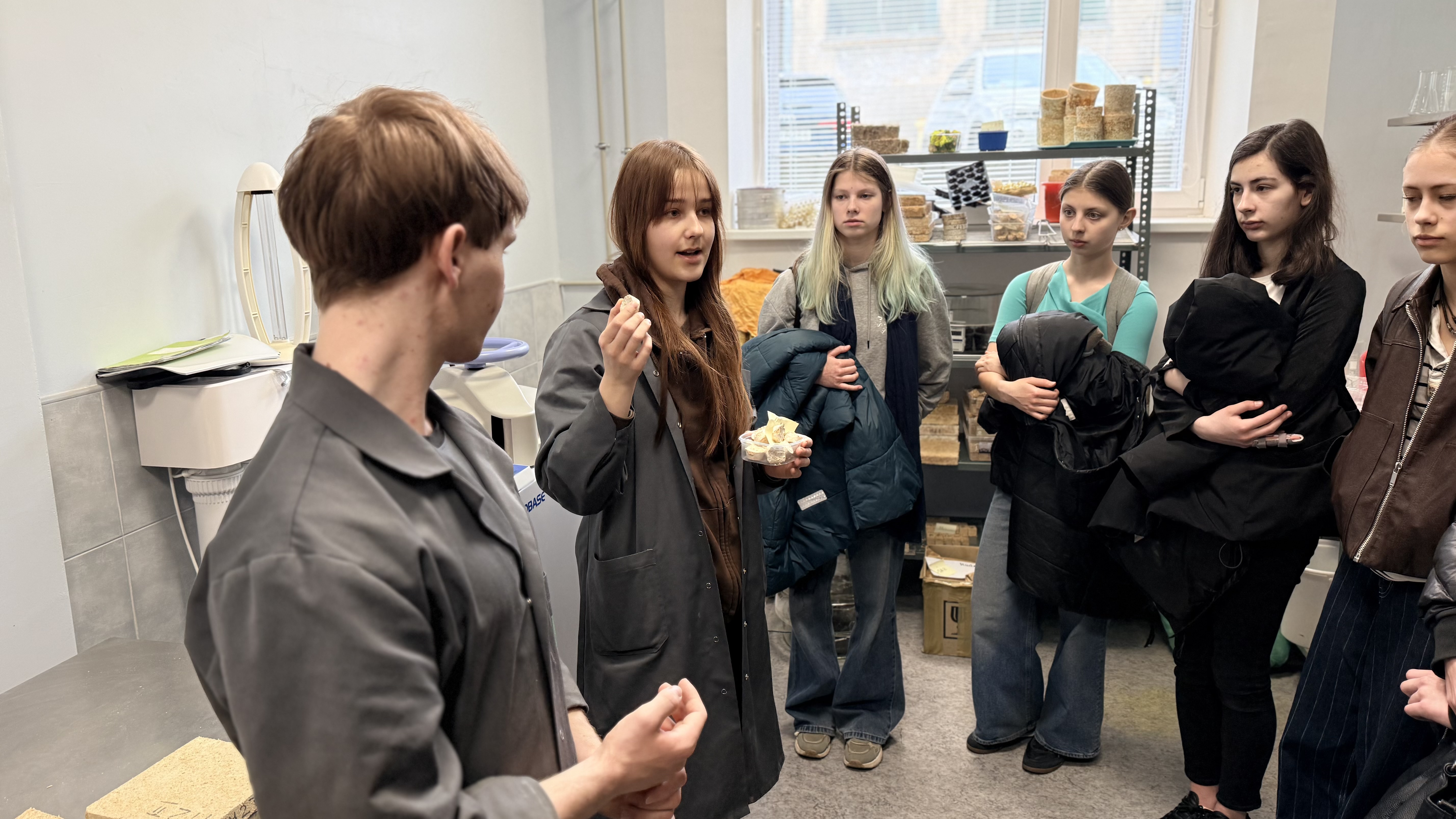 Praktisko daļu vadīja LVKĶI zinātniskais asistents Bc. biol. Mikus Kampuss un studente Emīlija Skrupsa, kuri skolēniem demonstrēja micēlija kompozītu paraugus un to īpašības, ļaujot tuvāk iepazīt šo materiālu struktūru un pielietojumu.