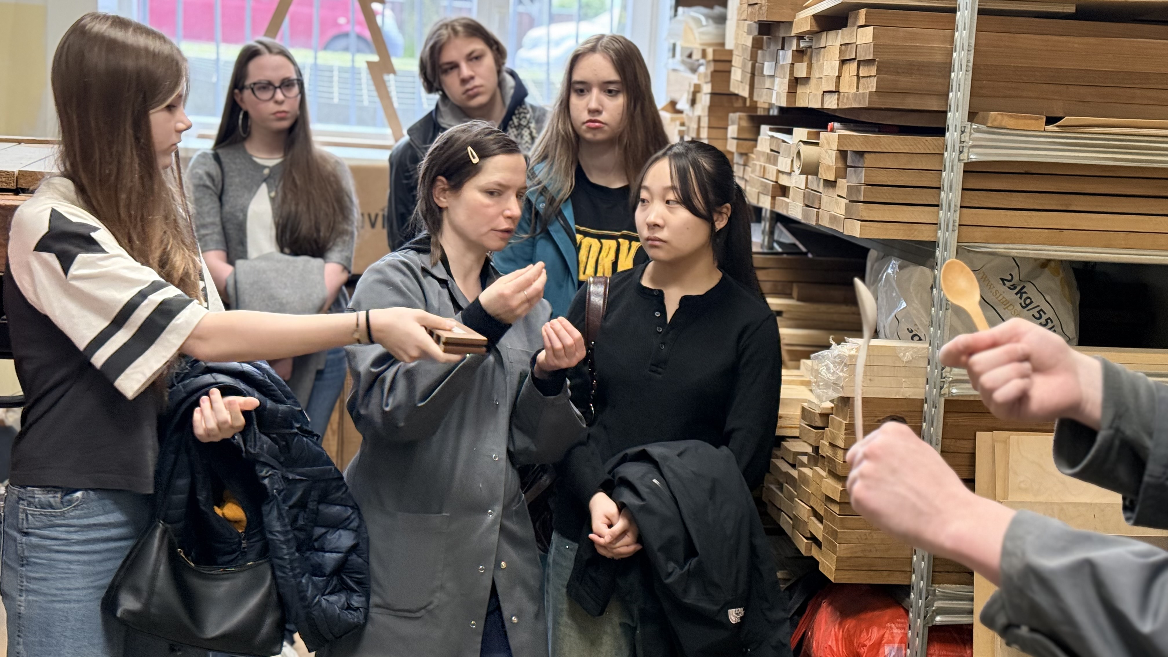 Koksnes noārdīšanās un aizsardzības laboratorijā skolēnus uzņēma pētnieks Ph. D. Errj Sansonetti, zinātniskais asistents Mg. chem. Lotārs Olivers Vasiļjevs un studente Monta Druviņa, demonstrējot, kā pētniecība tiek izmantota ilgtspējīgu risinājumu izstrādē.
