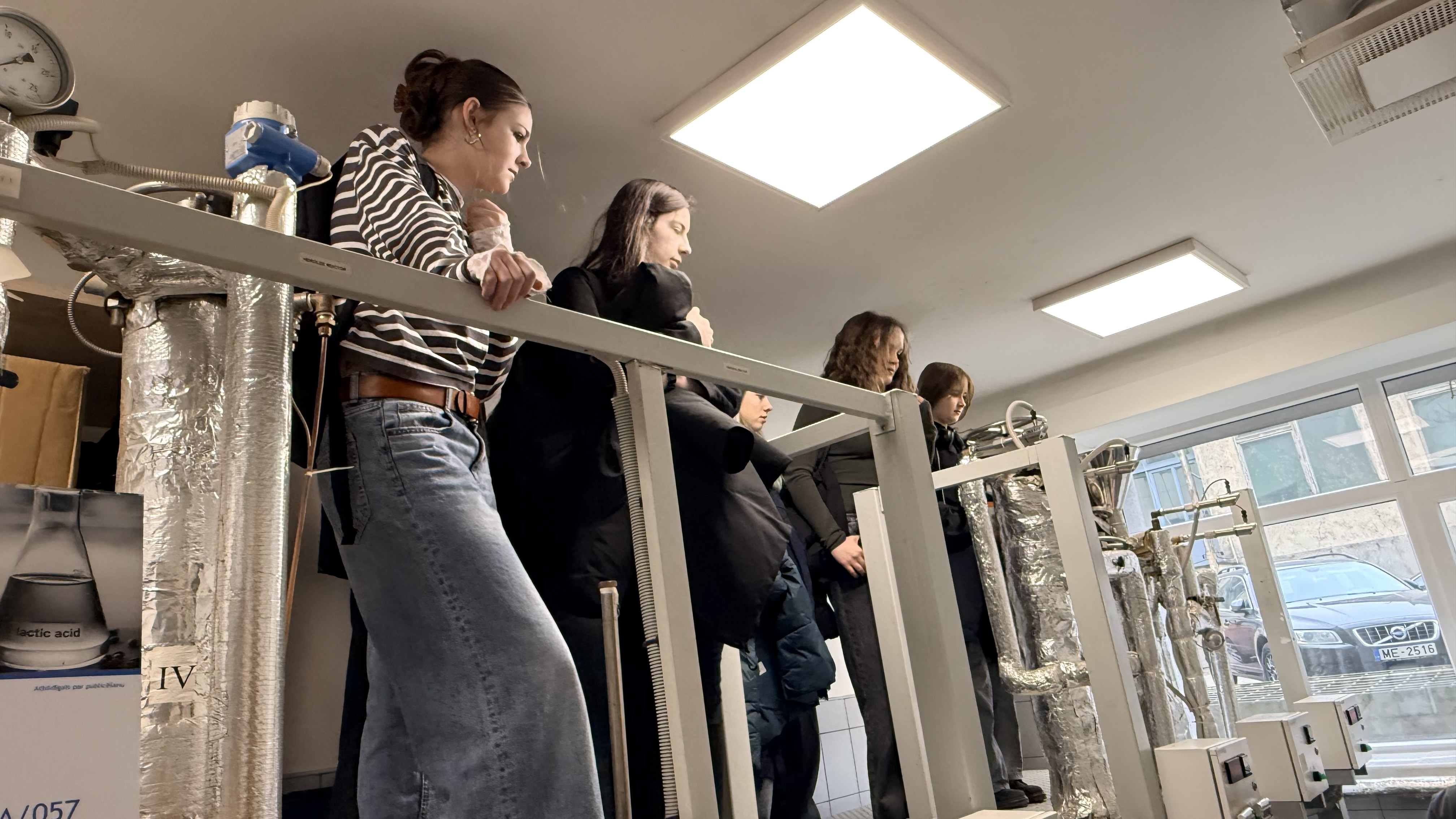 Biorafinēšanas laboratorijā skolēni iepazinās ar biomasas pārstrādi un jaunu produktu ar augstu pievienoto vērtību izstrādi.