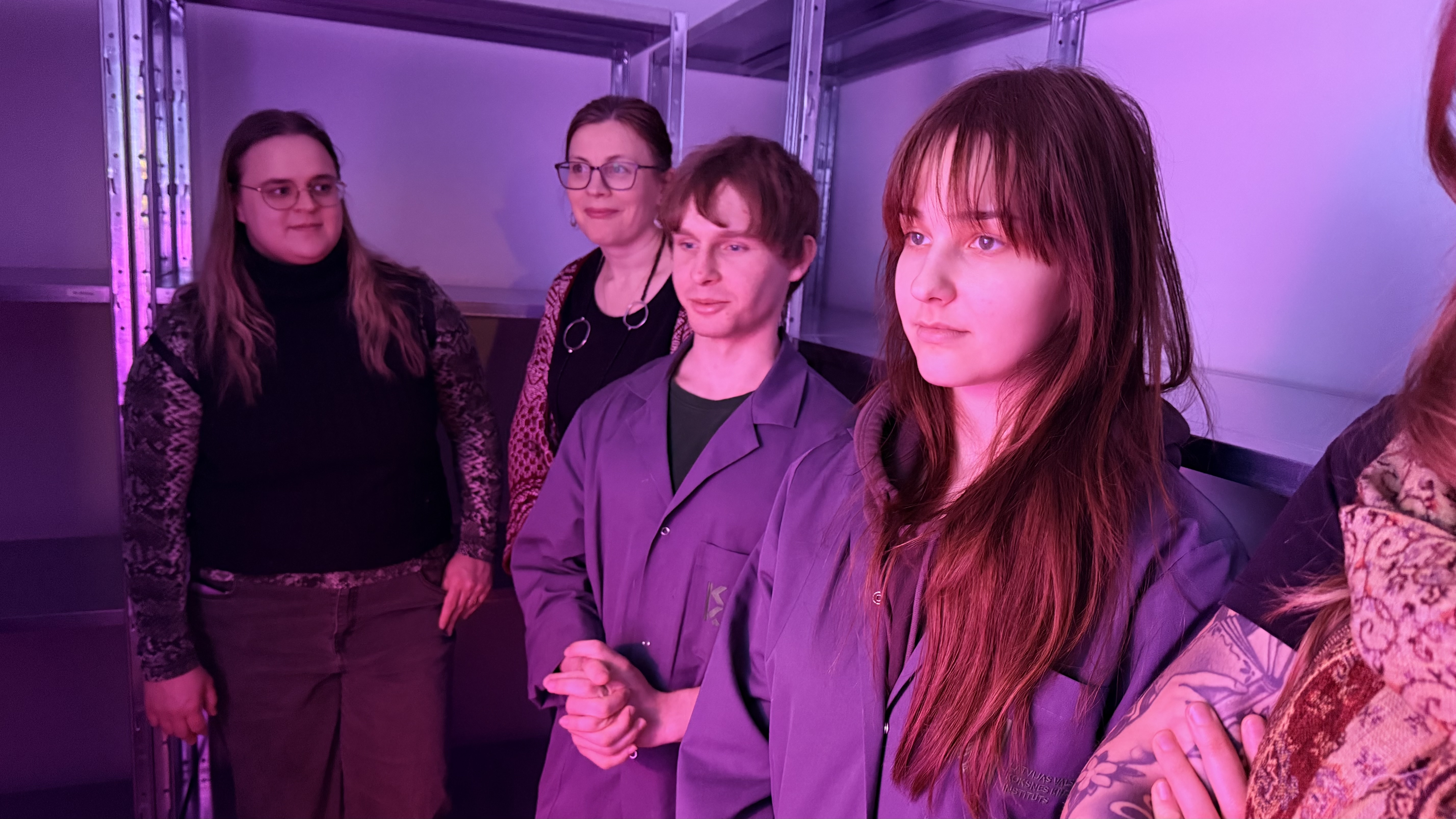 Savukārt studenti Bc. biol. Mikus Kampuss un Emīlija Skrupska prezentēja pirmos rezultātus pētījumā par raibās tauriņpiepes (Trametes versicolor) augļķermeņu audzēšanu laboratorijas apstākļos īpaši izveidotā inkubatorā. Studentiem tika demonstrēta audzēšanas kamera, kur kontrolētā vidē tiek regulēta temperatūra, mitrums un gaisa sastāvs, lai iespējami precīzi atkārtotu dabā notiekošos sēnes augšanas procesus.