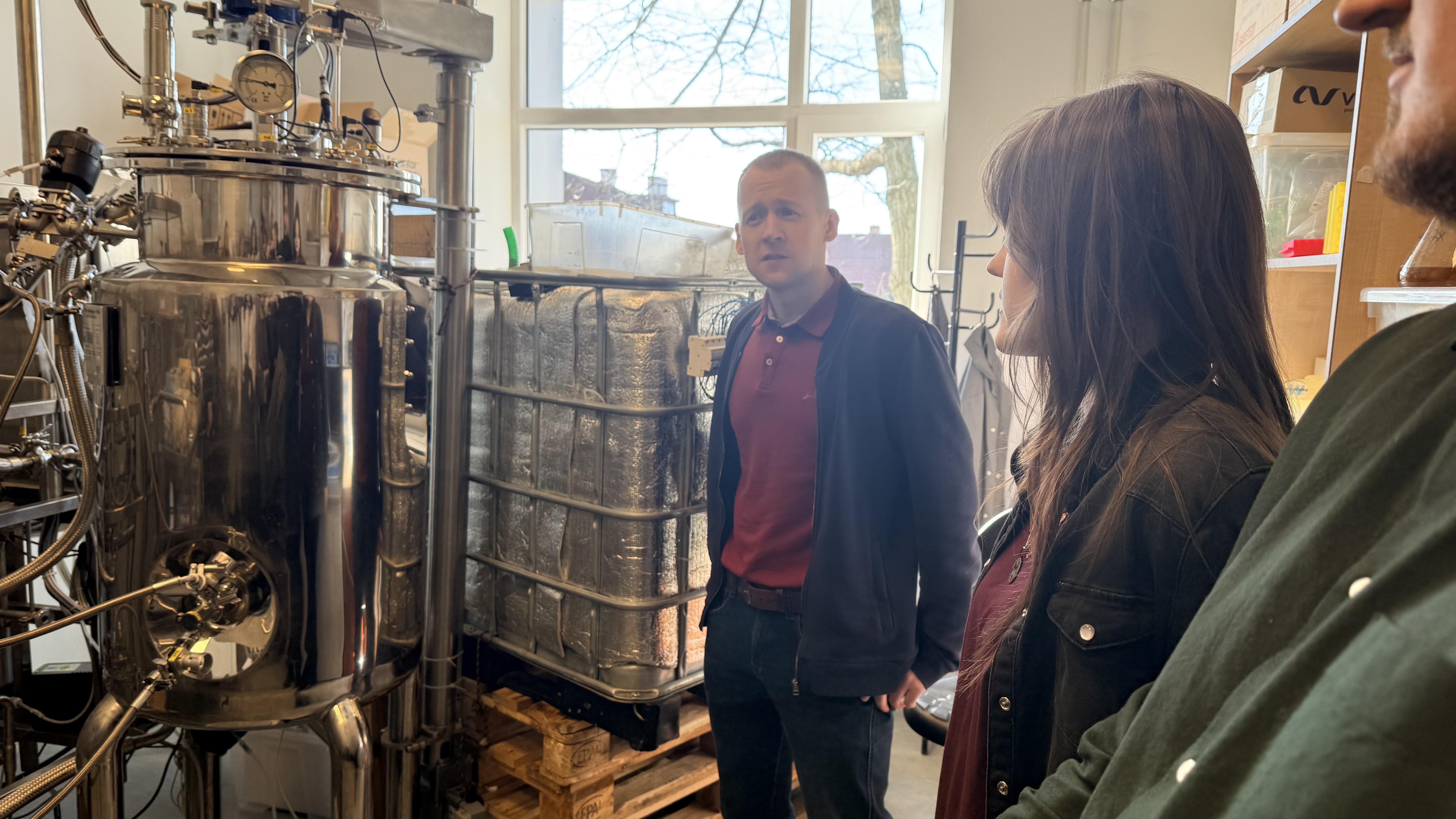 Vizītes laikā studenti apmeklēja arī LVKĶI Bioinženierijas laboratoriju, kur laboratorijas vadītājs Dr. sc. ing. Oskars Grīgs iepazīstināja ar laboratorijā uzkrāto pētniecības pieredzi baktēriju, raugu, micēlija sēņu un mikroaļģu kultivācijas procesu izpētē un pilnveidē.