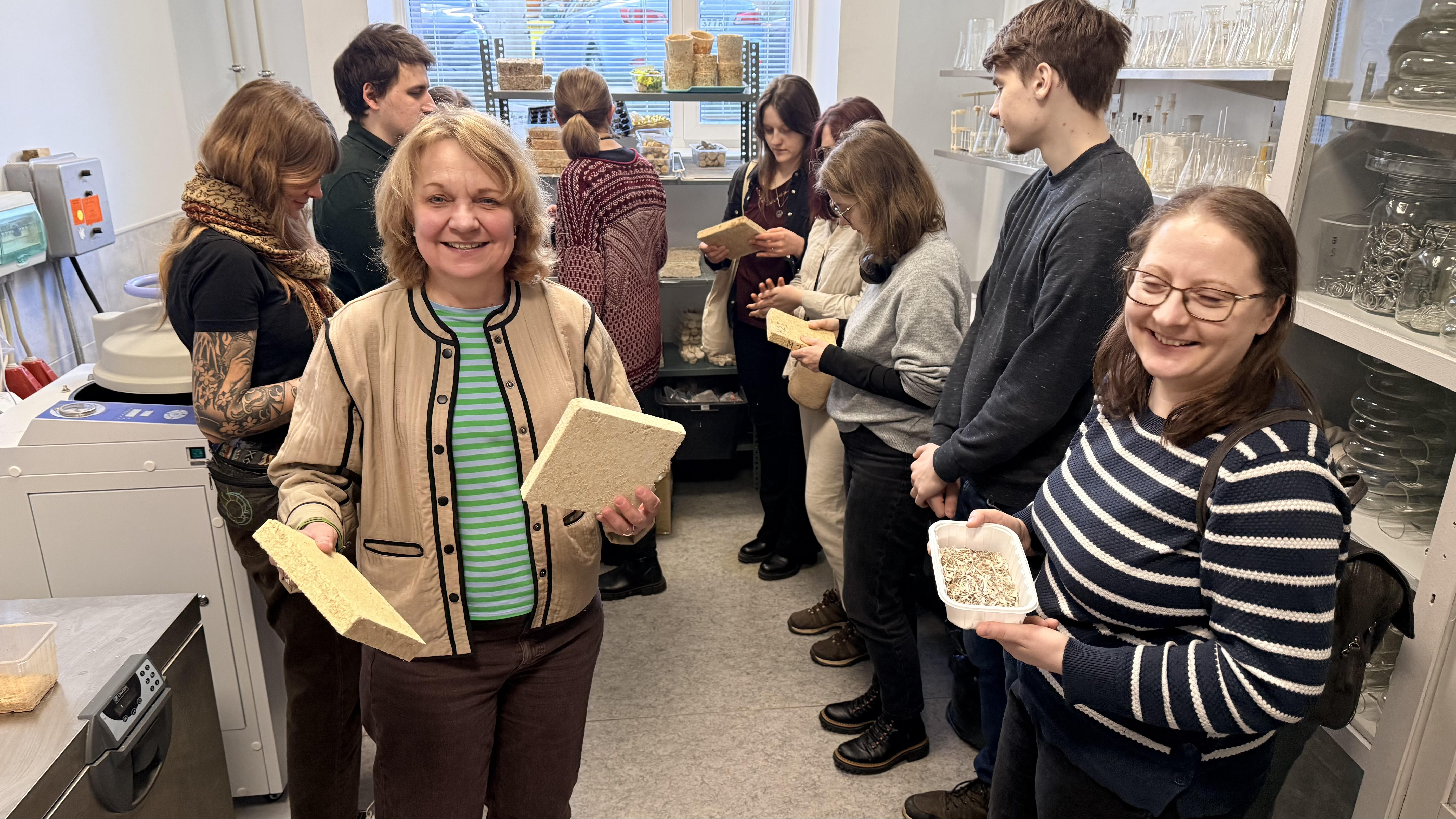 2026. gada 4. martā LU studenti kopā ar kursa pasniedzēju – LVMI “Silava” vadošo pētnieci Dārtu Kļaviņu, kā arī LVMI “Silava” Meža fitopatoloģijas un mikoloģijas laboratorijas darbiniekiem apmeklēja Latvijas Valsts koksnes ķīmijas institūtu (LVKĶI).