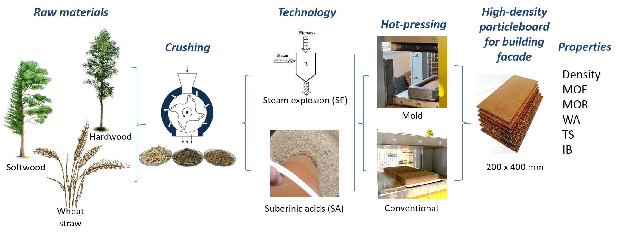 Būvniecības sektors šobrīd patērē vismaz 40% no kopējās enerģijas un rada tikpat lielu daļu siltumnīcefekta gāzu emisiju, tādēļ jaunu, videi draudzīgu risinājumu izstrāde ir īpaši nozīmīga. Rakstā “Physical–Mechanical Properties of Innovative Biobased Particleboards for Application in External Building Facades” autori Dr.sc.ing. Ramūnas Tupčiauskas, Mg. sc. ing. Andris Bērziņš, Ph.D. Mārtiņš Andžs, Mg. sc. ing. Rūdolfs Bērziņš, Dr.sc.ing. Jānis Rižikovs un Dr.sc.ing. Gunārs Pavlovičs analizē augsta blīvuma skaidu plātņu īpašības, ko izstrādāja no vietējiem resursiem – kviešu salmiem, baltalkšņa un skujkokiem (egle un priede). Šis pētījums īpaši izceļ Latvijas bioekonomikas potenciālu, ļaujot izmantot mūsu pašu laukos un mežos pieejamo biomasu, lai radītu augstākas pievienotās vērtības produktus ar starptautisku nozīmi.