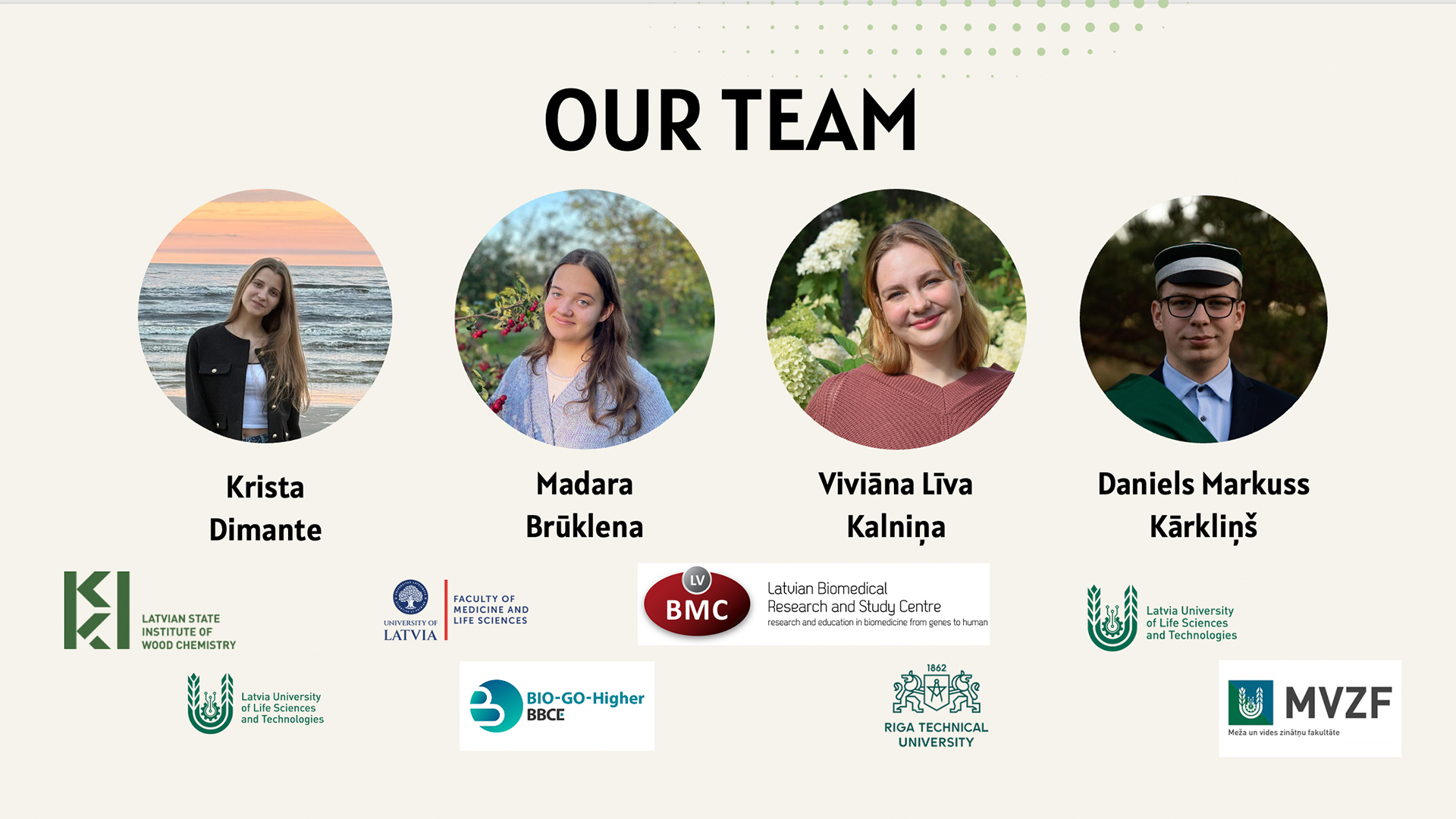 LVKĶI studentu komandu veidoja Krista Dimante, Daniels Markuss Kārkliņš, Madara Brūklena un Viviāna Līva Kalniņa, komandas vadītāja – Dr. sc. ing. Inese Fiļipova.