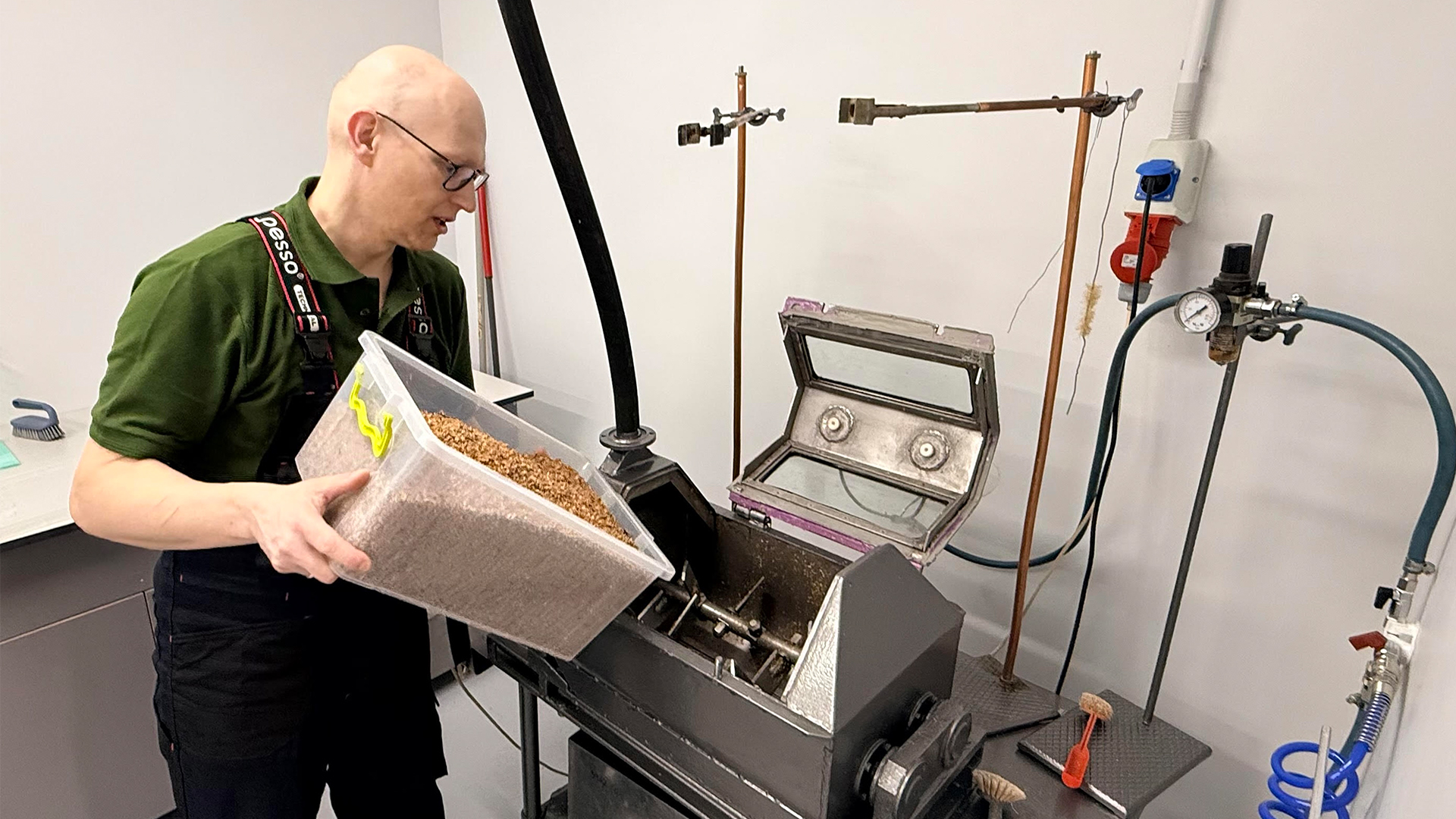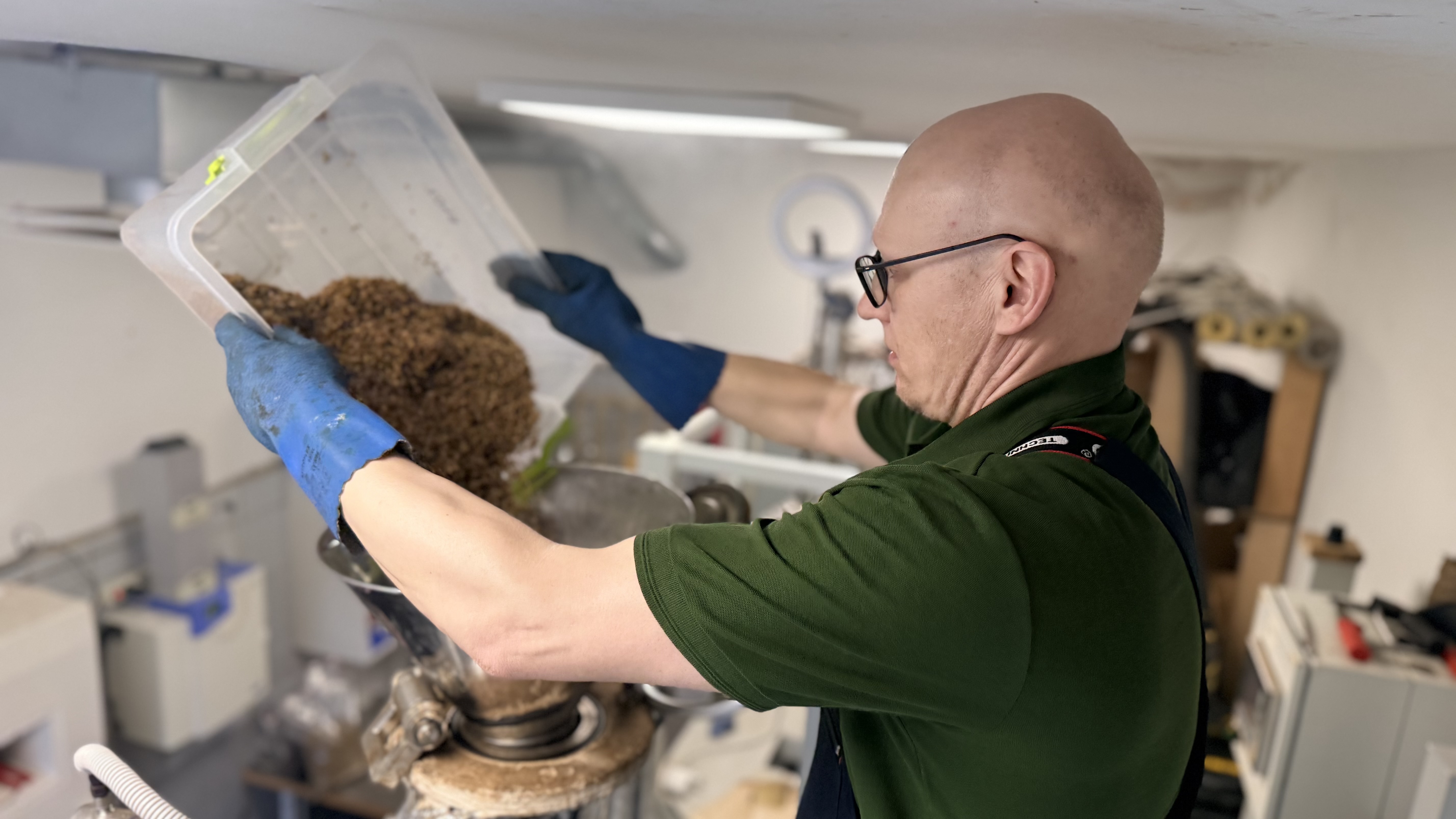 “Katrs materiāls ir unikāls, un parametri, kas der vienam materiālam, neder citam,” skaidro projekta vadītājs Dr. sc. ing. Māris Puķe. “Drabiņas nāk ļoti mitras no alus darītavas, tāpēc tās vispirms centrifugējam, nosakām mitrumu un tikai tad veicam eksperimentālā plāna aprēķinus un eksperimentus.”