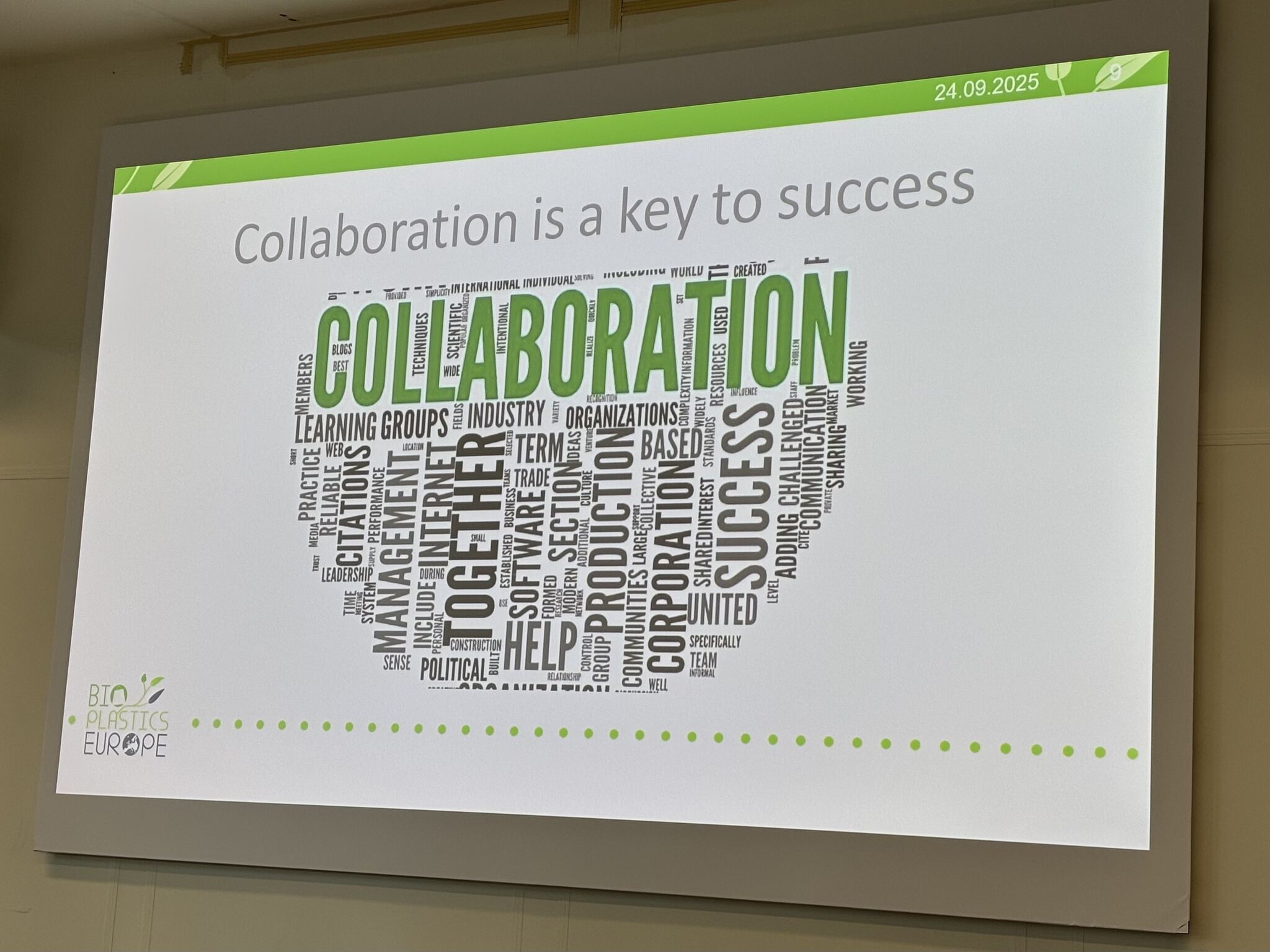 Kristīne uzstājās ar prezentāciju “Putting ‘bio’ in plastics”, kurā aplūkoja bioplastmasas tematiku, strukturēja savu stāstījumu pēc ražotā materiāla dzīves cikla: