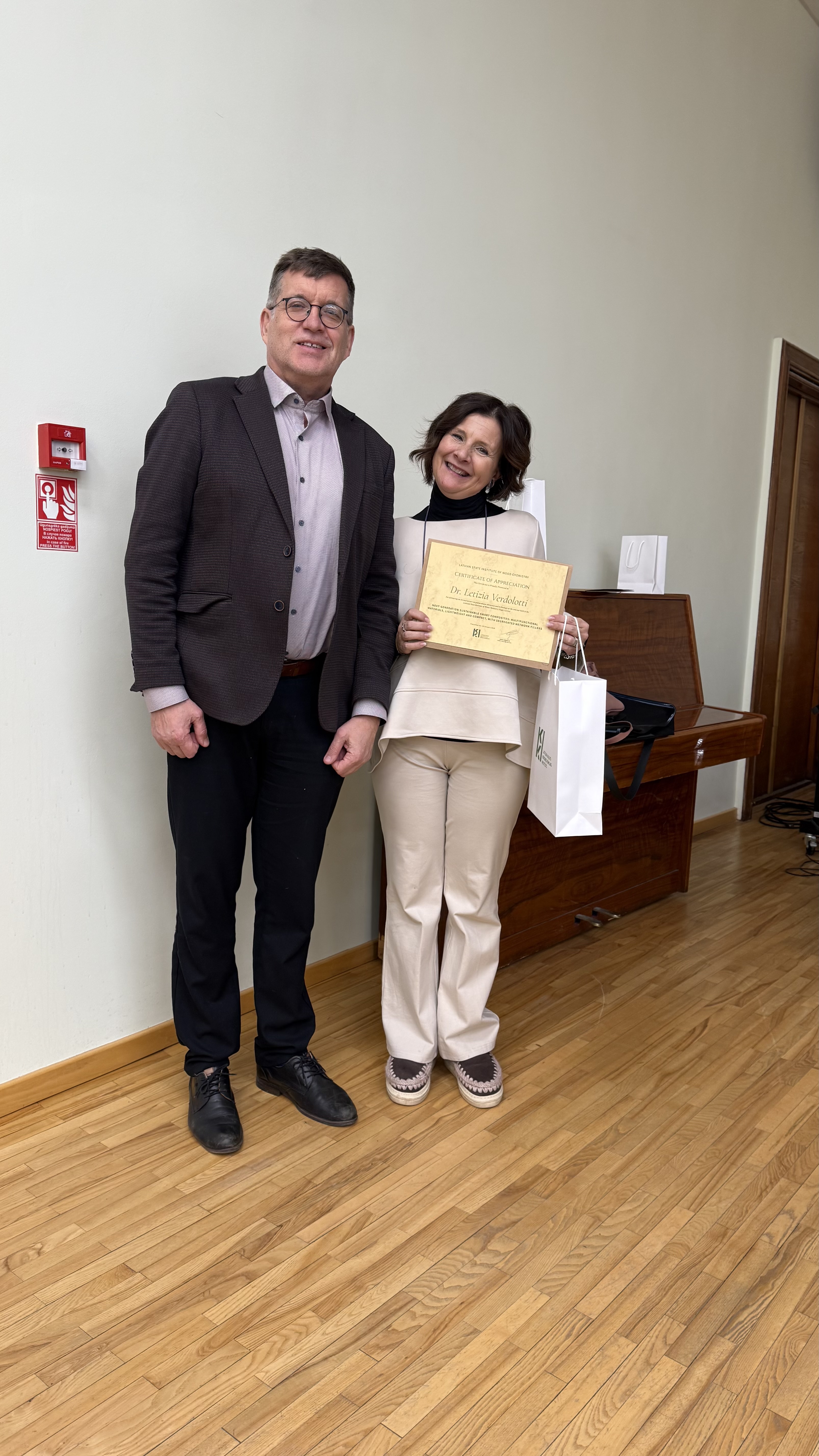 LVKĶI Dr. Verdolotti uzstājās ar lekciju “Nākamās paaudzes ilgtspējīgi viedie kompozītmateriāli: daudzfunkcionāli, viegli un kompakti materiāli ar neviendabīgu struktūru pildvielām” (Next-Generation Sustainable Smart Composites: Multifunctional Materials, Lightweight and Compact, with Segregated Network Fillers).