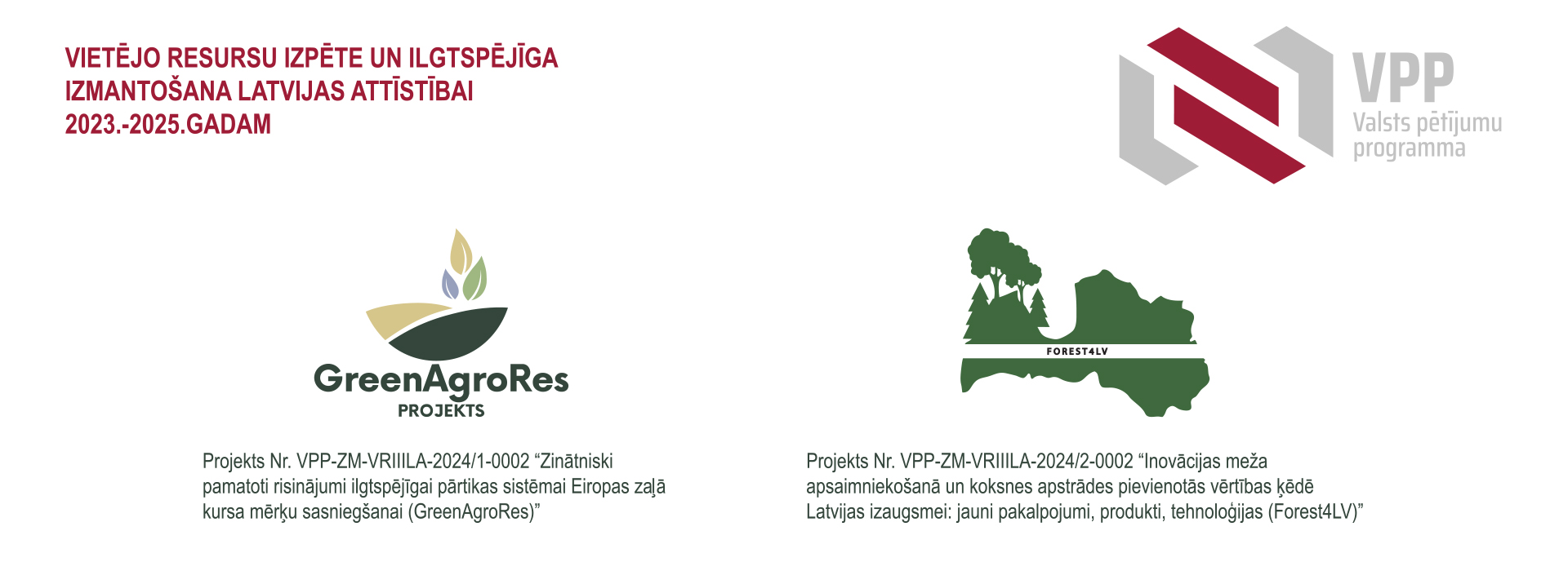 - Jauni produkti un tehnoloģijas – lignocelulozes kompozīti, inovatīvas saistvielas un putu materiāli, efektīvākas koksnes pārstrādes metodes.