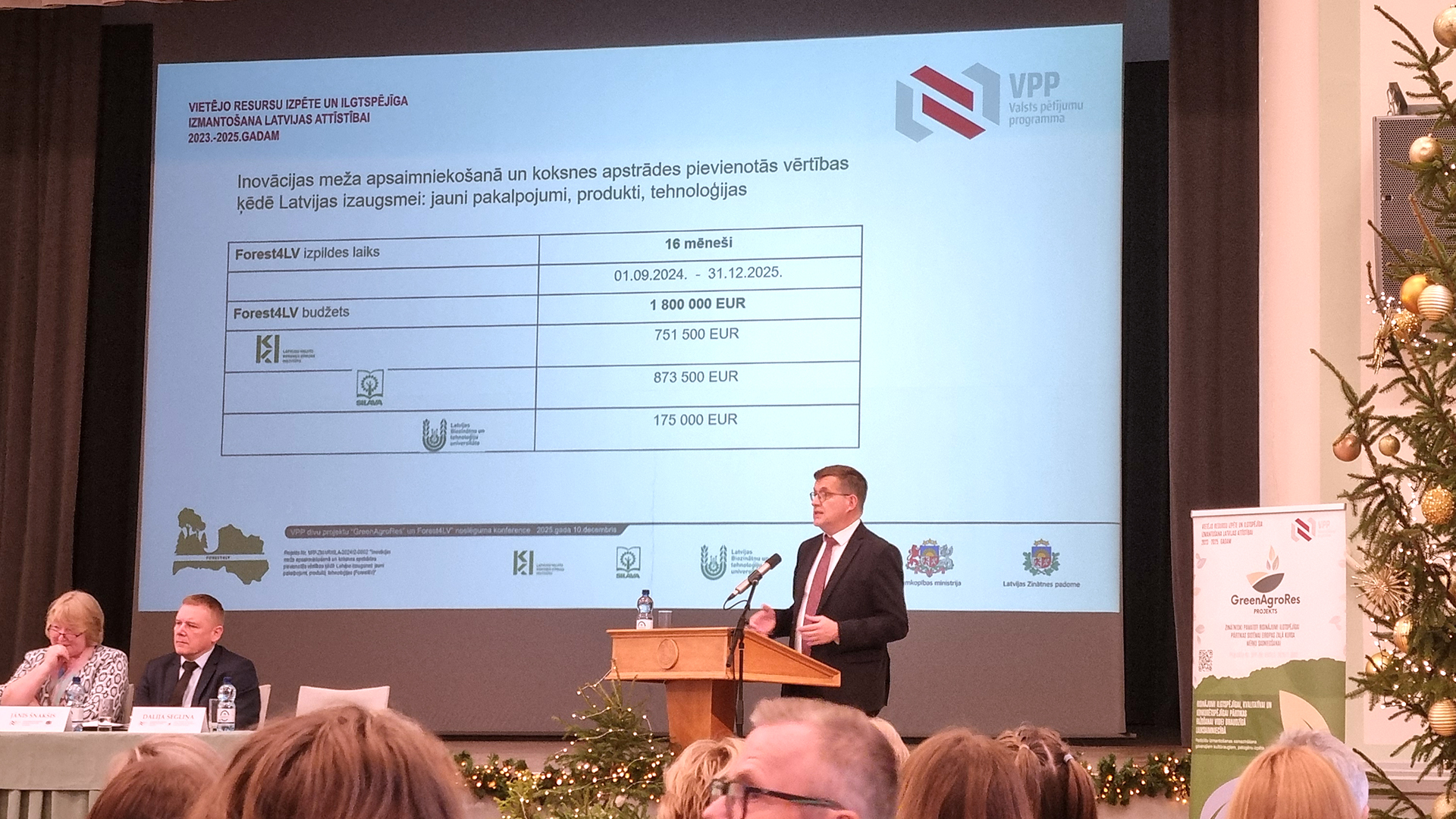 2025. gada 10. decembrī Jelgavā LBTU Lielajā aulā notika Valsts pētījumu programmas “GreenAgroRes” un “Forest4LV” noslēguma konference, kas pulcēja lauksaimniecības, pārtikas ražošanas un mežsaimniecības nozares pētniekus, politikas veidotājus, uzņēmējus un plašāku sabiedrību. Pasākuma mērķis bija izvērtēt kritiski īsā periodā – tikai 16 mēnešu laikā - paveikto un iezīmēt nākamos soļus Latvijas bioekonomikas attīstībā.