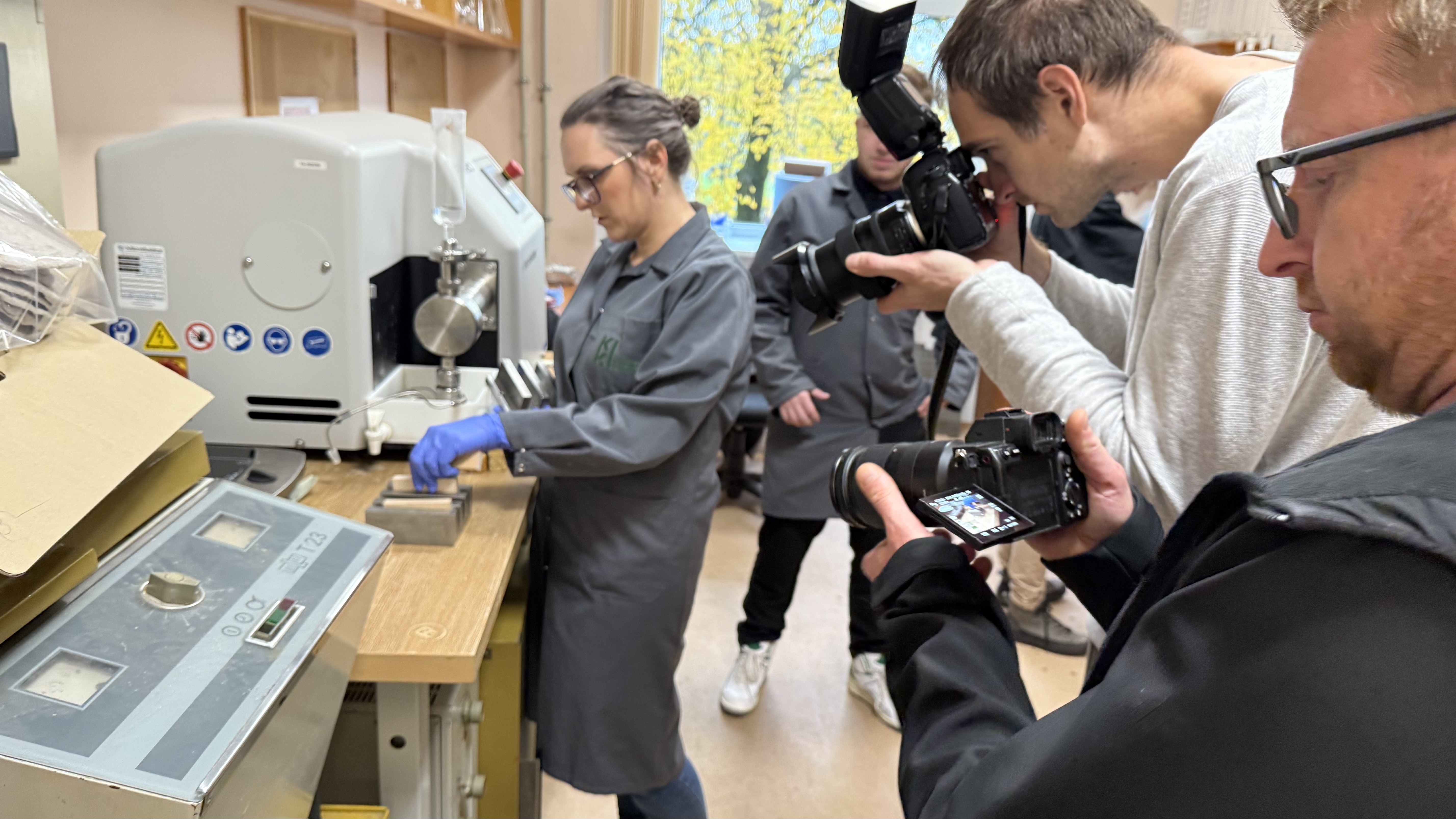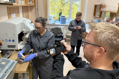 Today, filming took place at the Latvian State Institute of Wood Chemistry (LSIWC) featuring Dr. chem. Laura Andže, recipient of funding under the national long-term research programme BioPhoT, who leads the project “OsteoWood. Next-Generation Birch Wood Solution for Bone Fixation – a Sustainable Pathway from Forest to Functional Implants.”