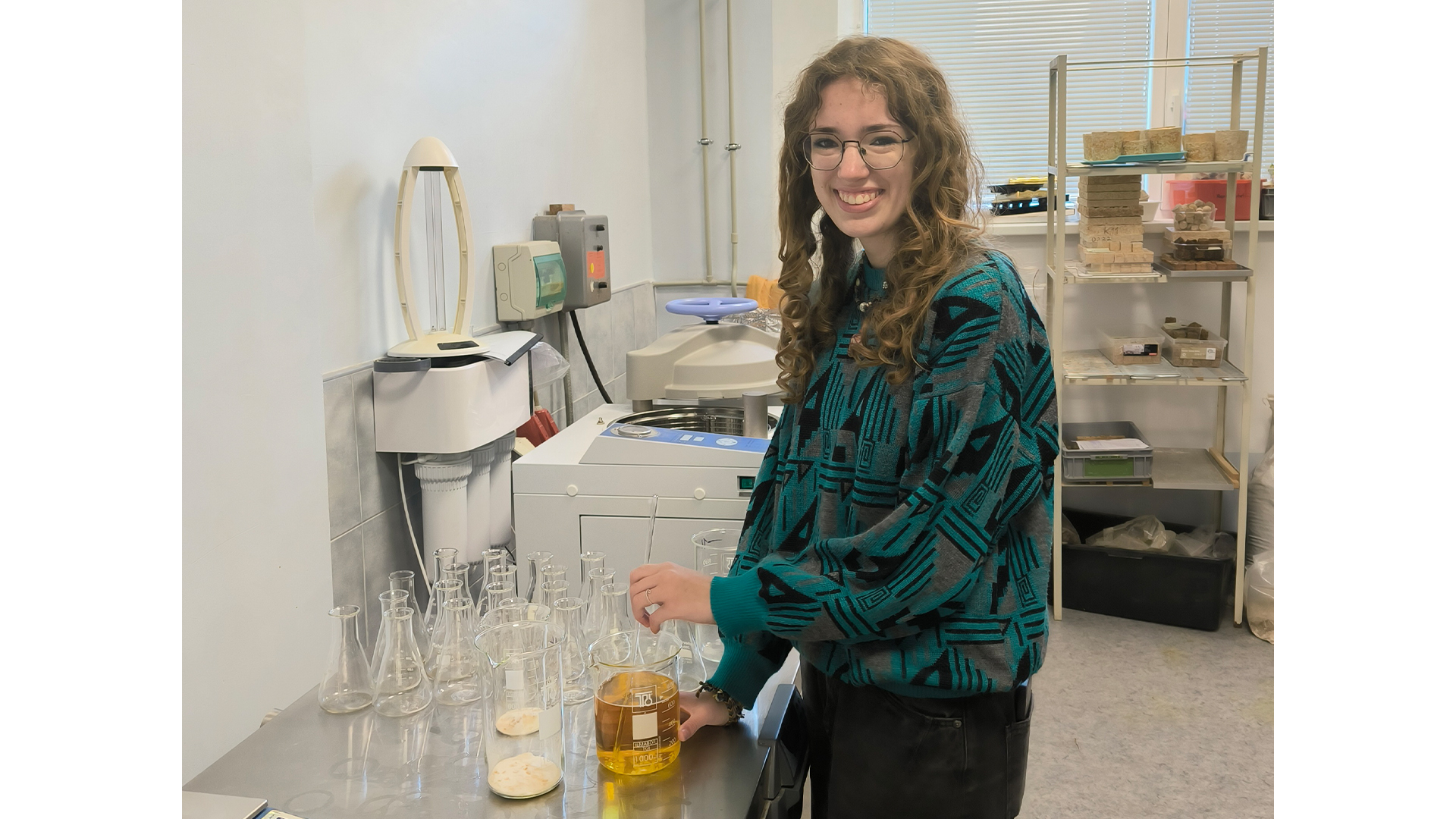 The student’s project combined scientific literature analysis with laboratory work. The physical and chemical properties of hogweed were determined, including pH levels, water absorption capacity, and particle size distribution, while mycelium was cultivated and composite material samples were produced.