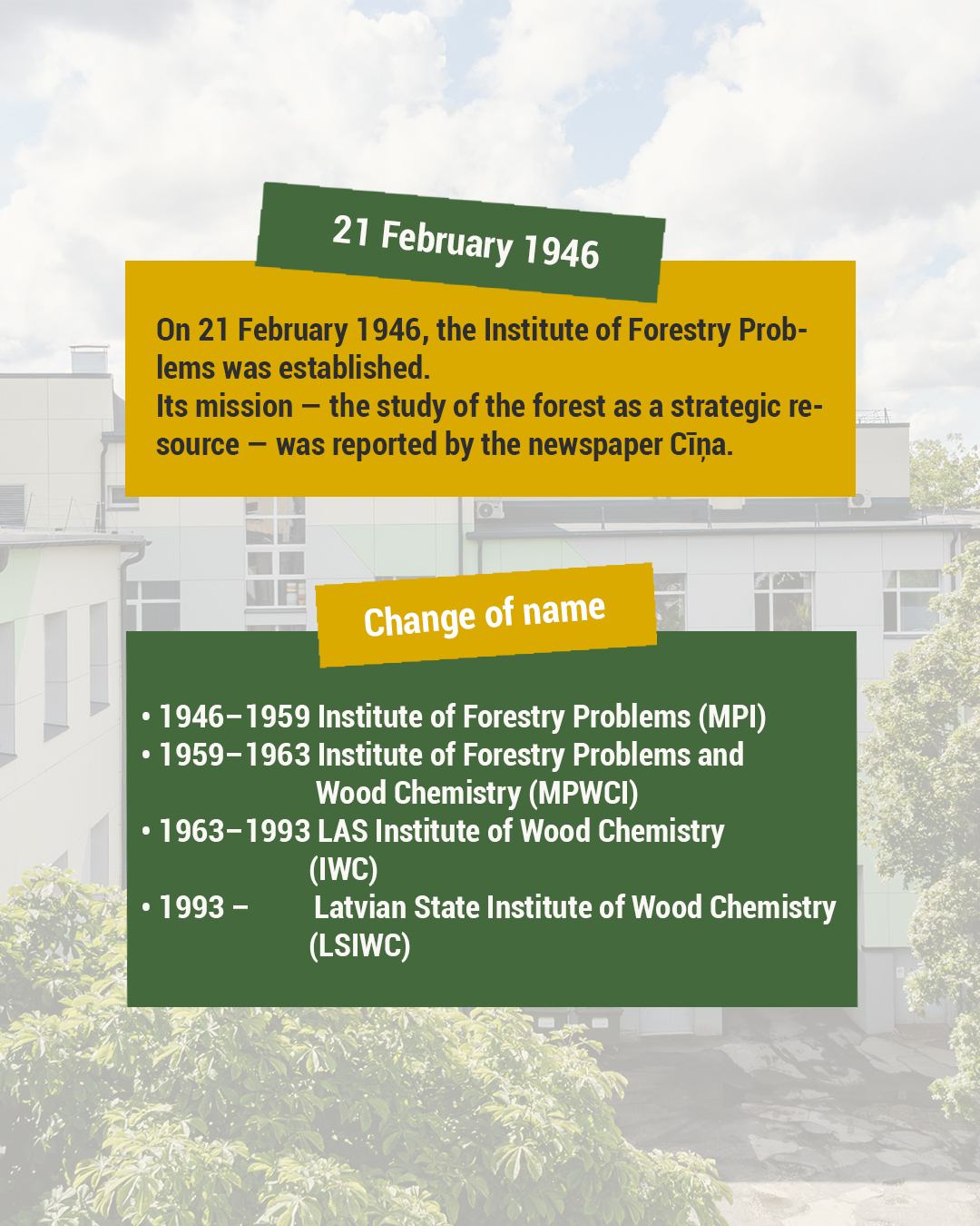 This February, the Latvian State Institute of Wood Chemistry marks its 80th anniversary.