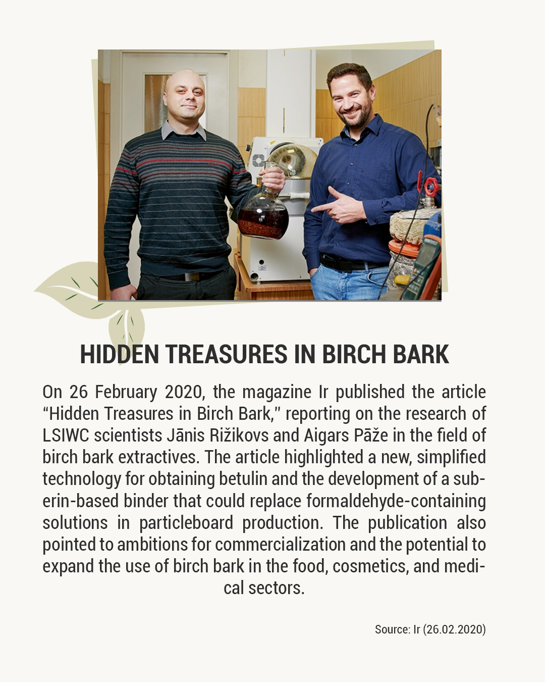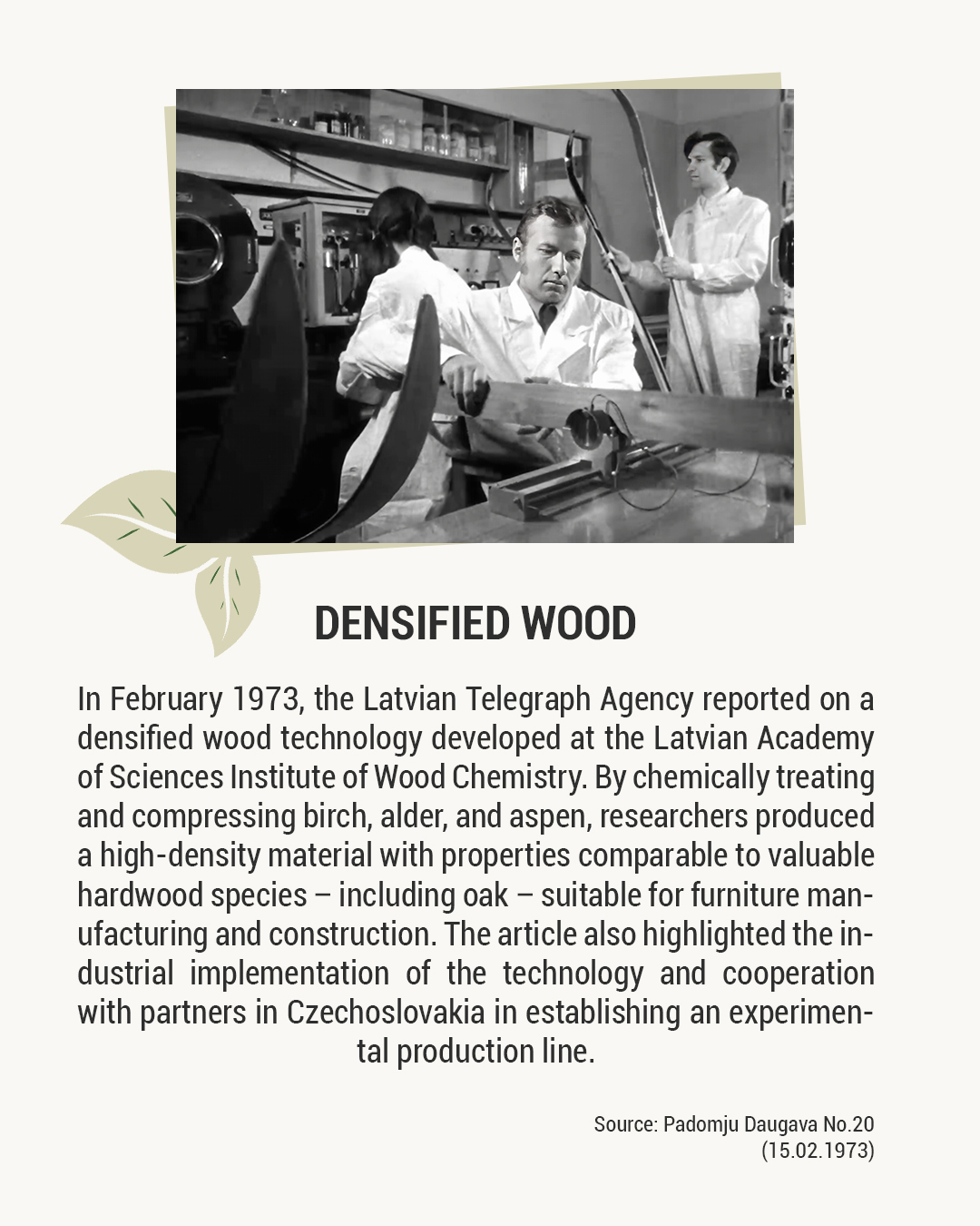 To mark the occasion, we have created a short visual carousel reflecting how the Institute’s research has been portrayed in the press from 1946 to 2025. The selection features February publications from different years — only a small part of a much broader media presence: from forest regeneration and lignin chemistry to densified wood, bio-based polyurethanes, cryogenic insulation for space applications, and birch bark extractives.