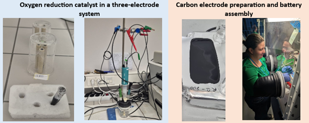 - During the mobility period, the electrochemical properties of thermally and thermochemically treated samples were evaluated. Samples thermally treated at 1000 °C were prepared for sodium-ion battery testing. This included mastering ink formulation, coating techniques, electrode preparation, and electrolyte preparation. Coin cell half-cells were assembled and tested using cyclic voltammetry and galvanostatic cycling methods. Thermochemically treated samples were prepared for catalyst evaluation and tested as oxygen reduction reaction (ORR) catalysts using the rotating disk electrode (RDE) method. Preparation of inks, electrodes, and electrolytes was carried out, followed by cyclic voltammetry and linear sweep voltammetry measurements.